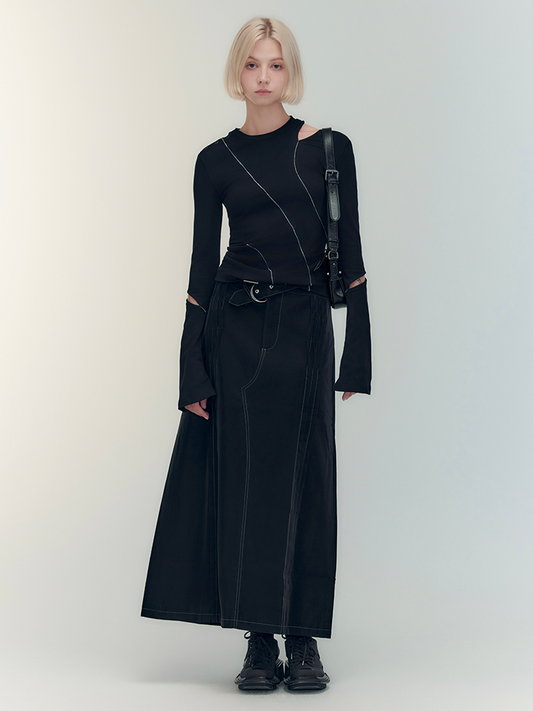 가죽 포켓 롱 니치 콘트라스트 스커트
