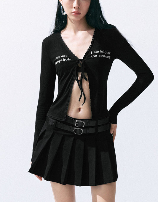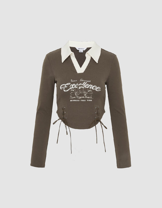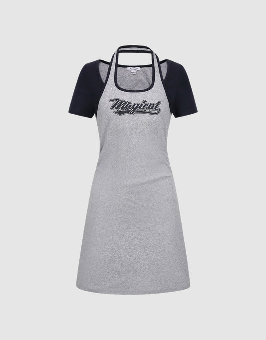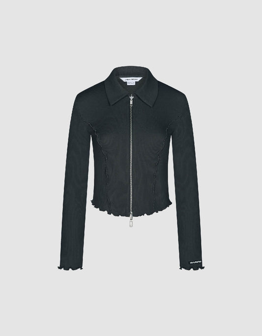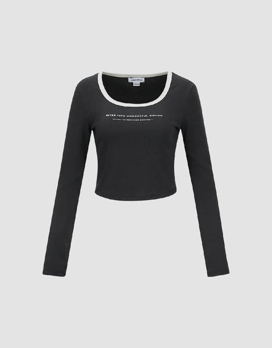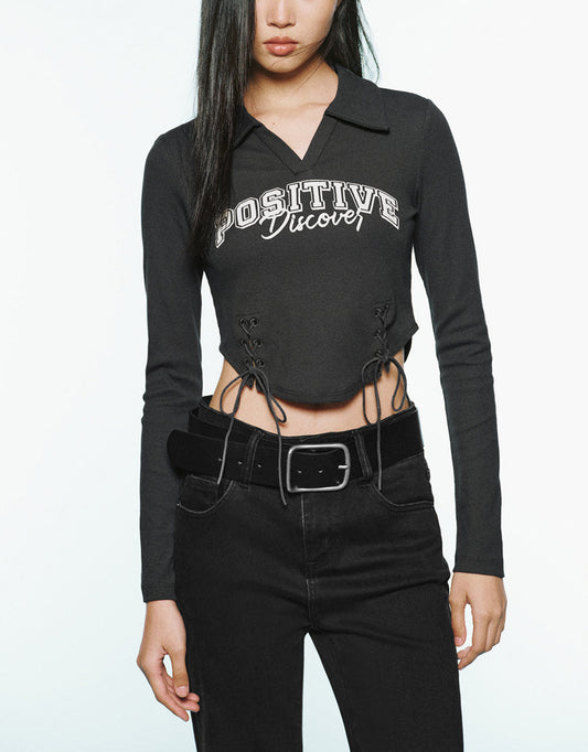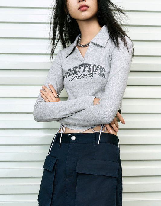 레터 프린트 스킨 의류 하이 칼라 바텀 탑