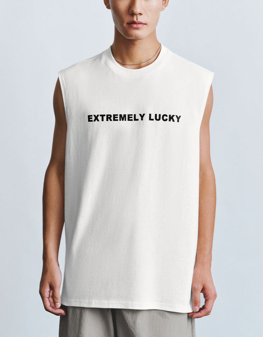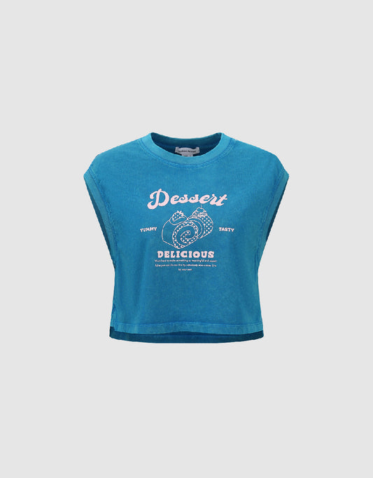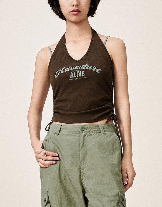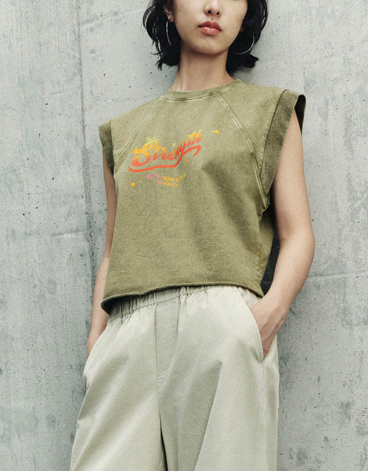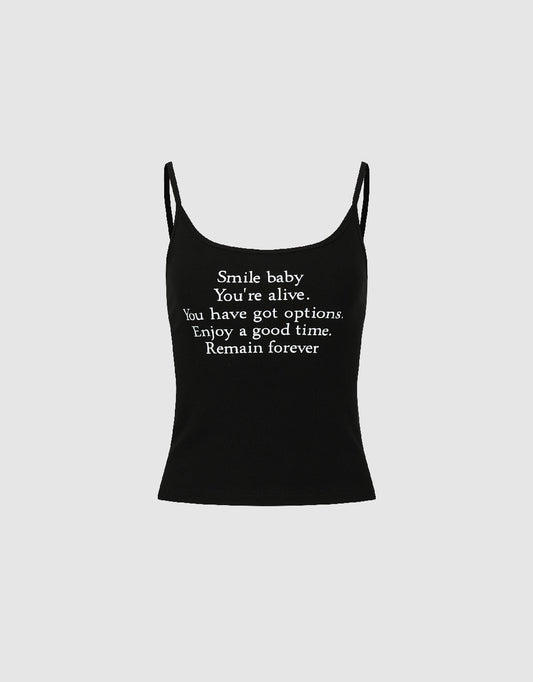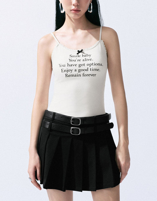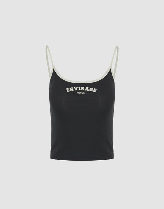 레터 프린트 스퀘어 넥 레이스 스티치 민소매 탑