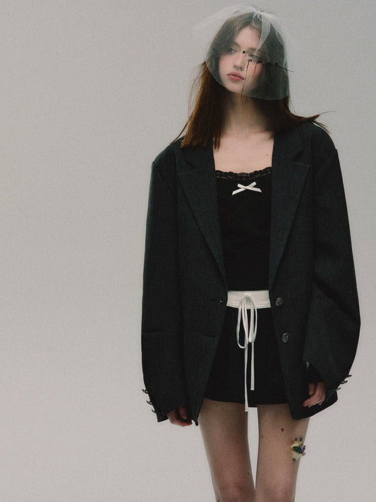 루즈한 리넨 블렌드 트위스트백 민소매 탑