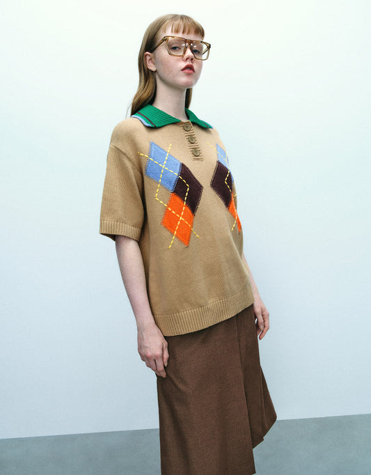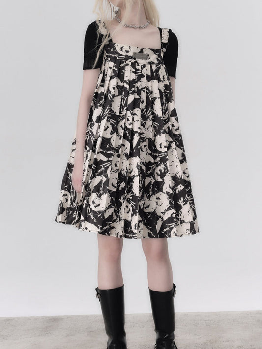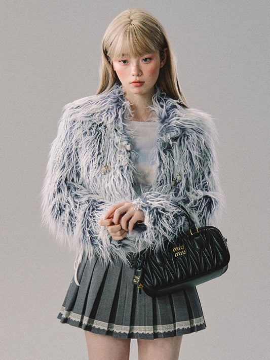 루즈한 체크무늬 셔츠 & 플리츠 스커트