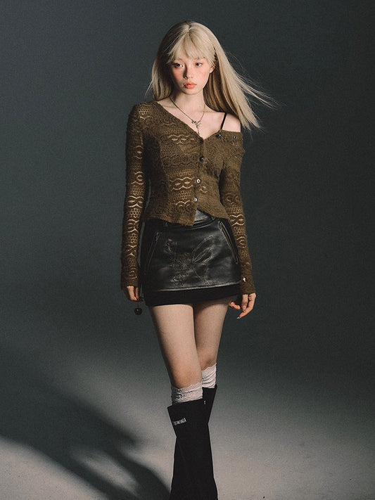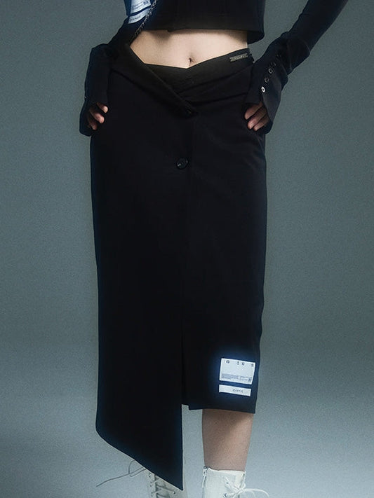 로우 웨이스트 레이스 스플라이싱 스트레이트 스커트