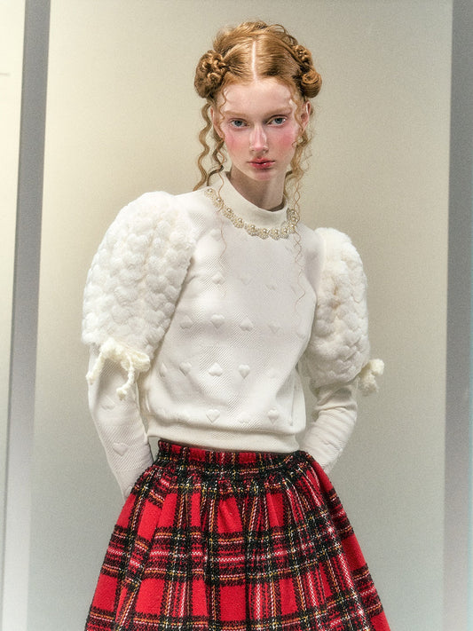 사랑 모피 소매 활 진주 장식 짧은 탑