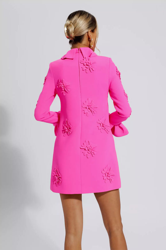 Lorelai 핑크 자카드 플로럴 긴팔 미니 드레스