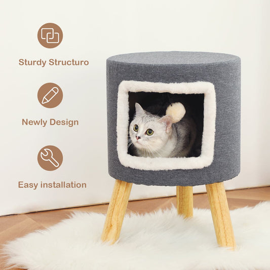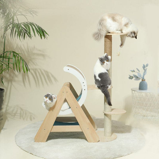 럭셔리 솔리드 우드 캣 콘도를 갖춘 현대적인 캣 트리 타워