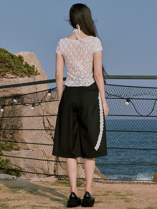 블랙 더블 레이어 패치워크 2-in-1 반바지
