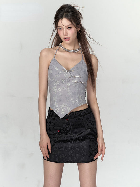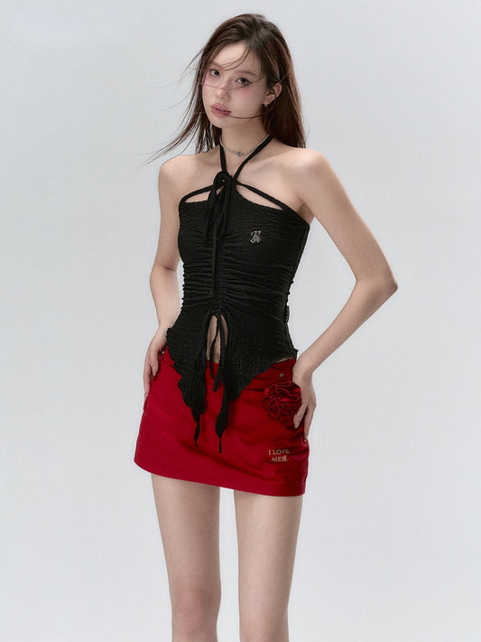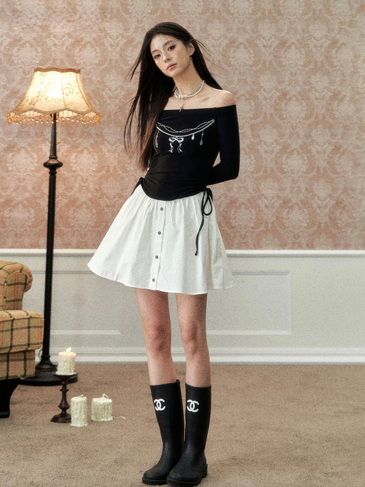 Black & Cream Bow-knot Drawstring Mini Skirt