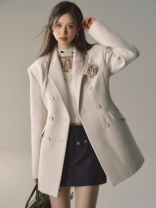 블랙 & 애프리콧 더블 브레스티드 울 블레이저