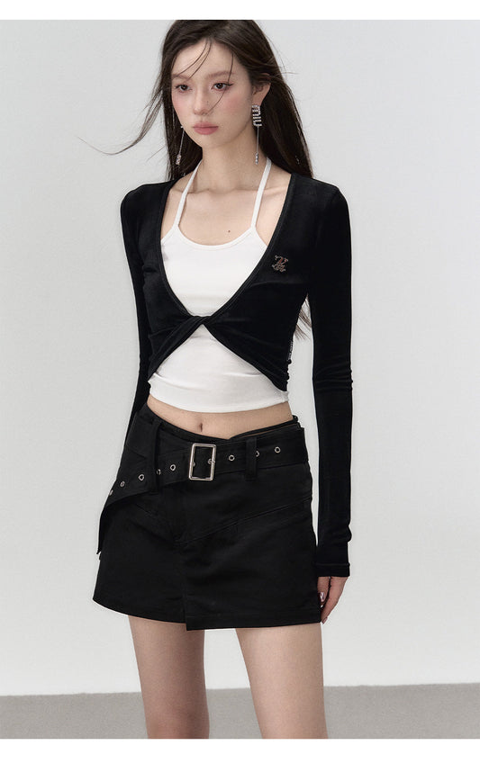 블랙 & 블루 2-in-1 짧은 니트 블라우스