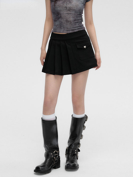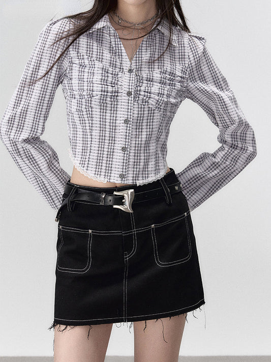 블랙 데님 2-in-1 스터드 프린지 미니 스커트