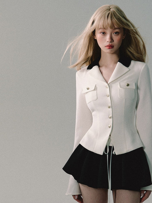 모노톤 컬러 슬림핏 숏셔츠 재킷