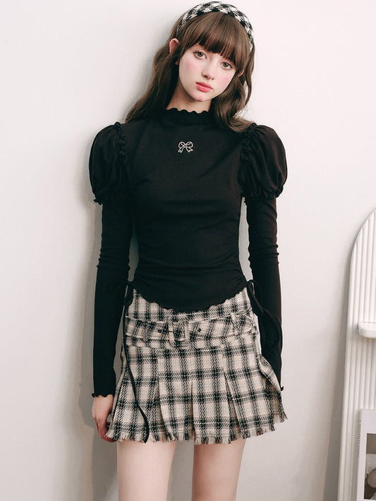 모던 플레이드 하이웨이스트 A라인 플리츠 스커트