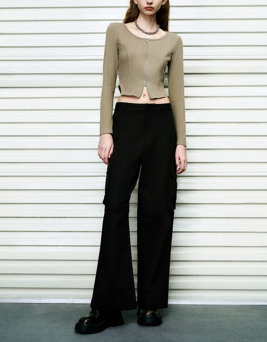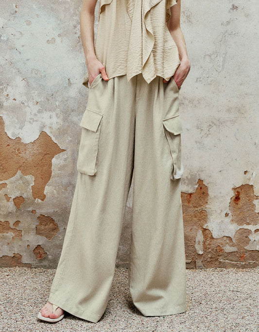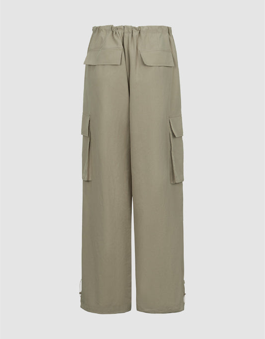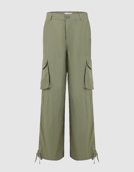 Multi-Pocket Drawstring Waist Wide-Leg Pants