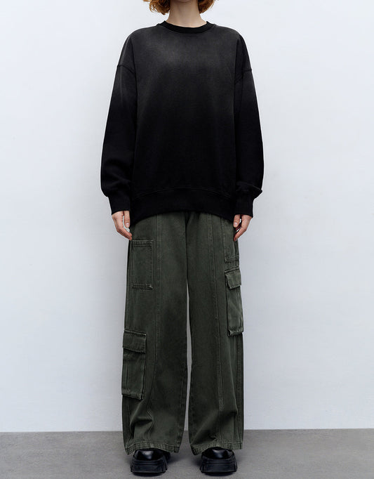 Multi-Pocket Distressed Heavy-Washed Cargo Jeans
