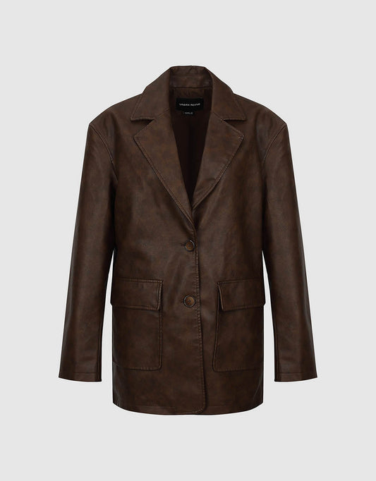 Notch Lapel Vegan Leather Tailored Blazer