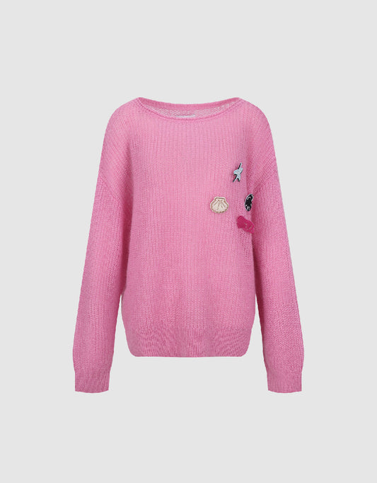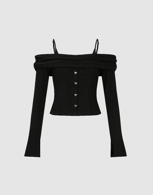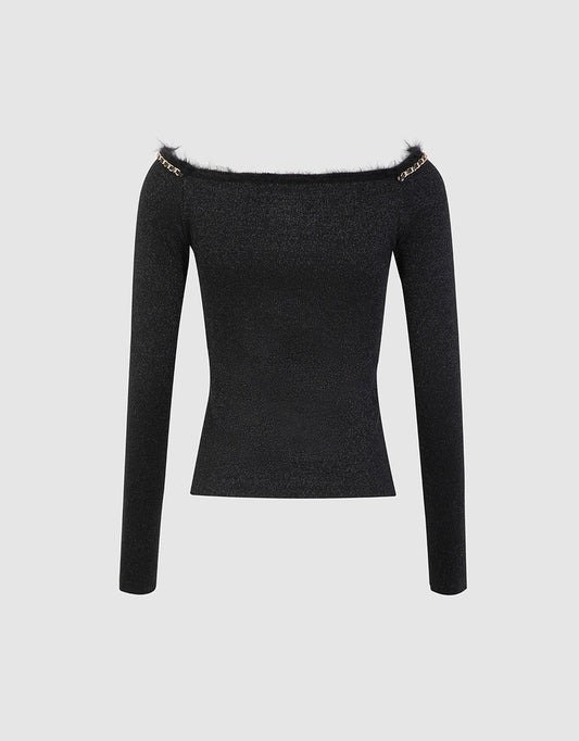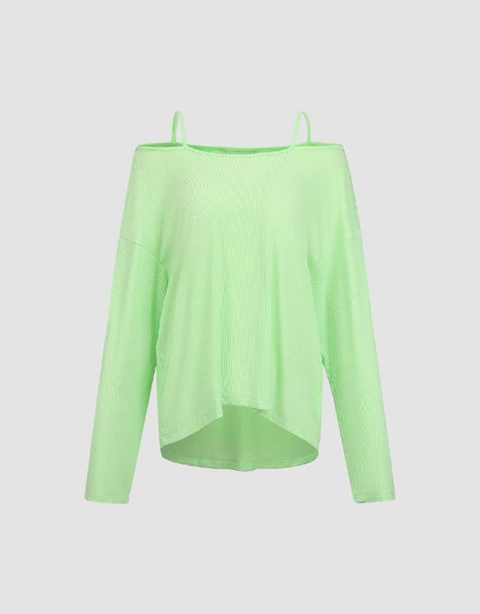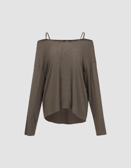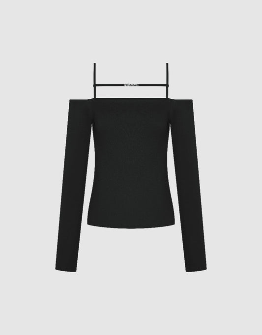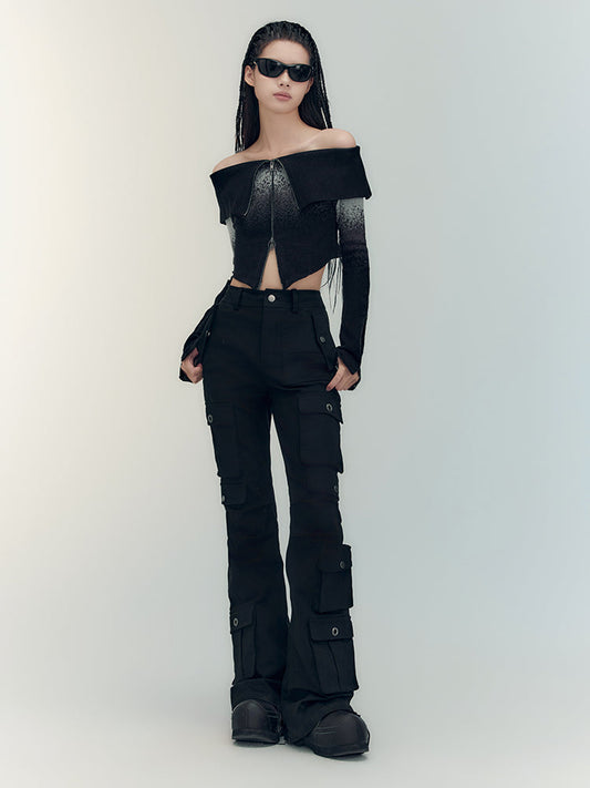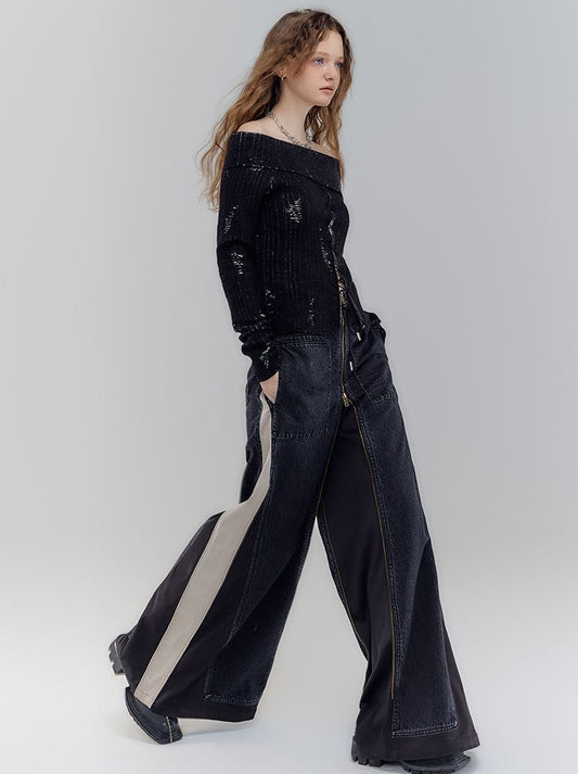 오프 숄더 그라데이션 랩 더블 지퍼 니트