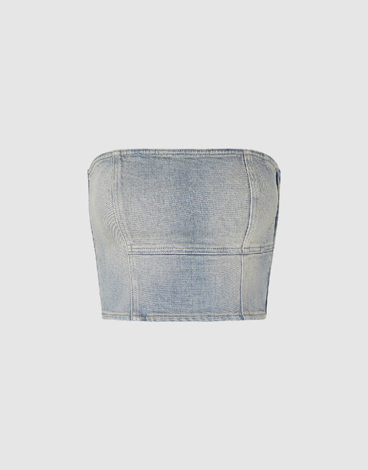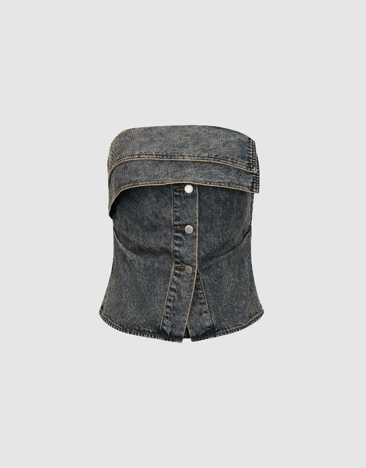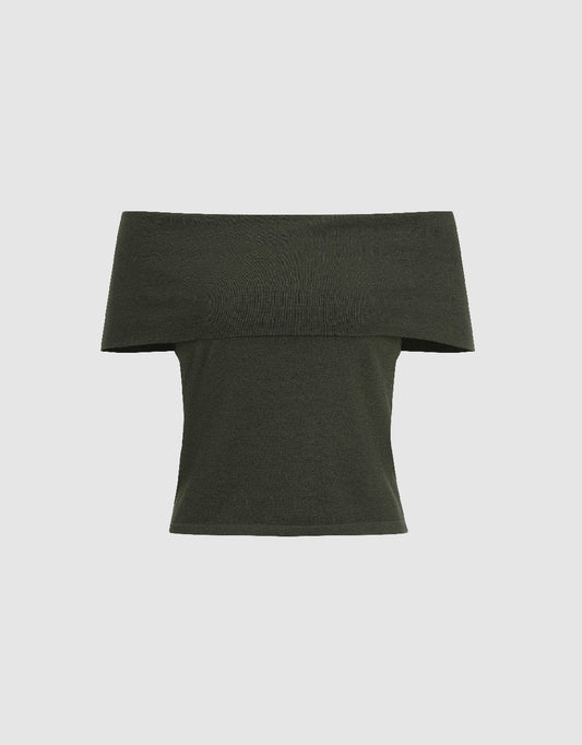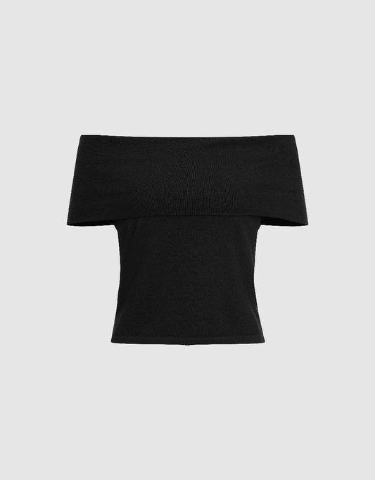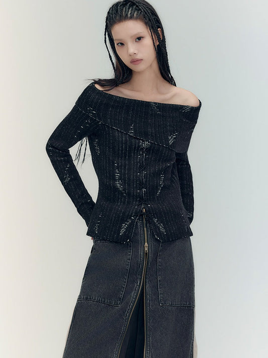 오프숄더 데님 캐주얼 다크 니트&데님-스커트