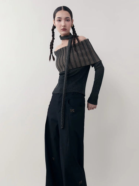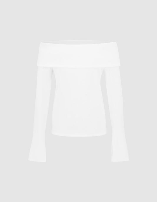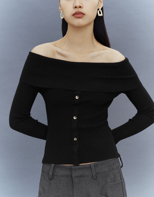 Off-Shoulder Sexy Slim Fit Knit Sweater Top with Detachable Sleeves