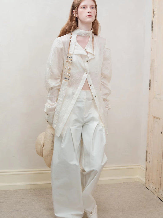오버사이즈 링클 시어 시크 롱 스카프&셔츠