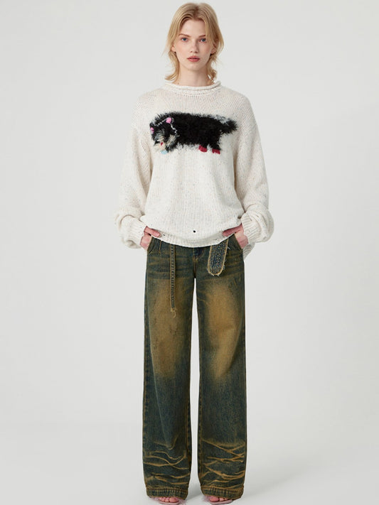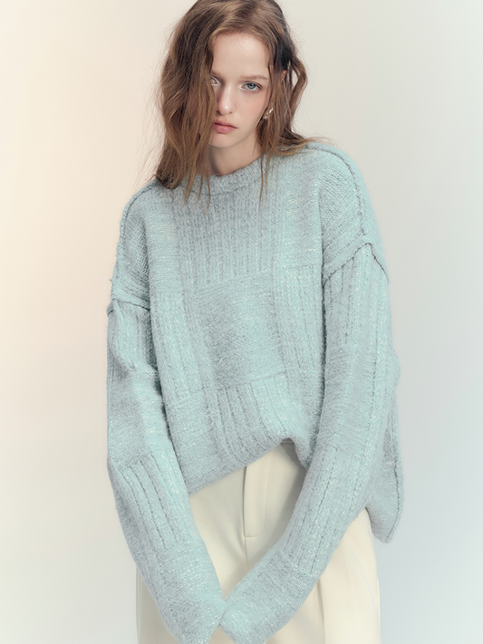 오버사이즈 루즈 심플 시크 레트로 크루넥 니트