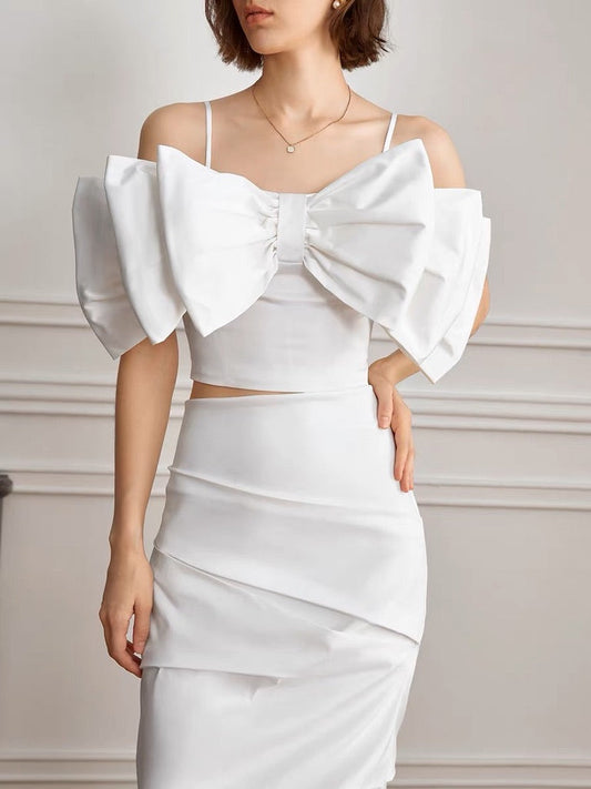 오버사이즈 트리플 보우 캐미 탑 화이트 색상