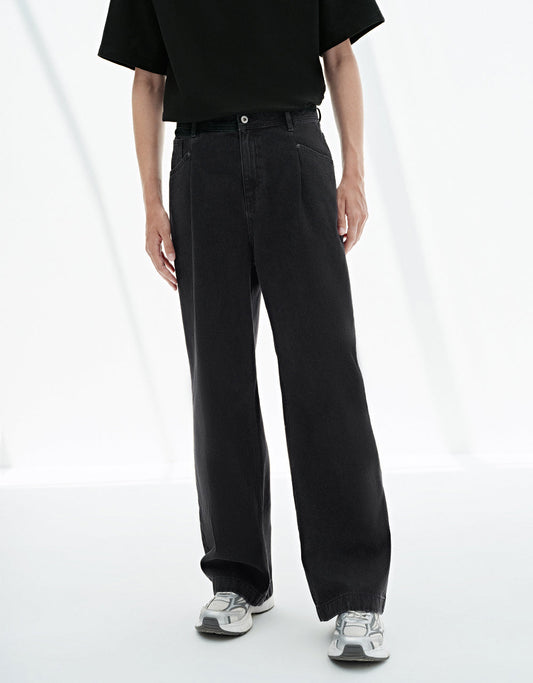 Oversize Zipper Denim Jacket & Wide-leg Denim Jeans Setup