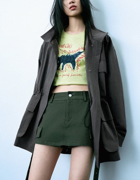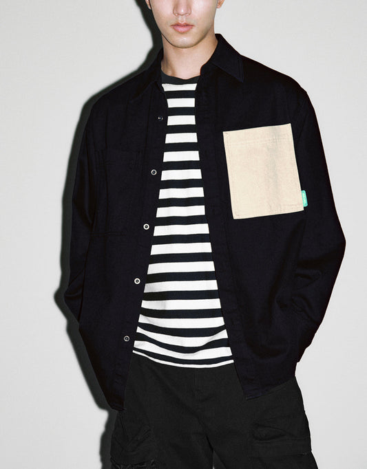 오버사이즈 차이나 사이드 버튼 밴드 칼라 셔츠