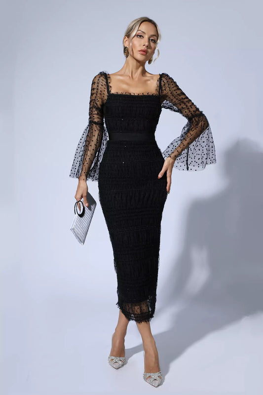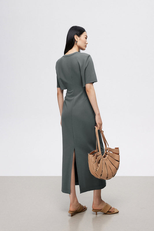 패딩 숄더 케이프 컷아웃 맥시 드레스 그레이 색상