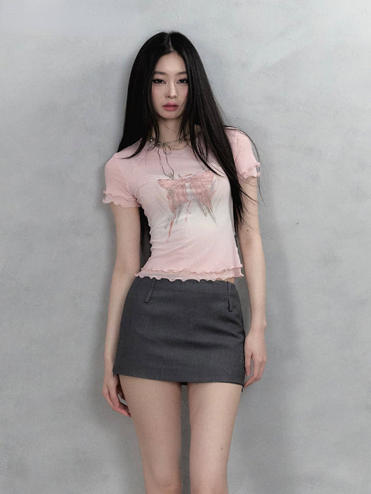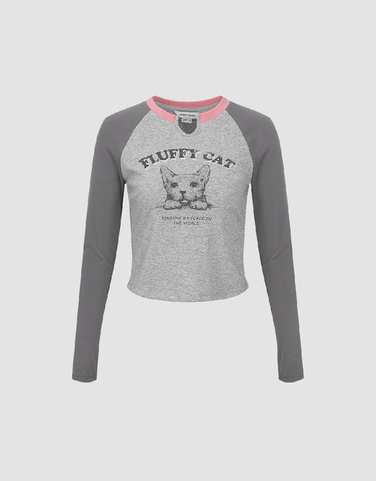 Pet Printed Raglan Sleeve Skinny T-Shirt