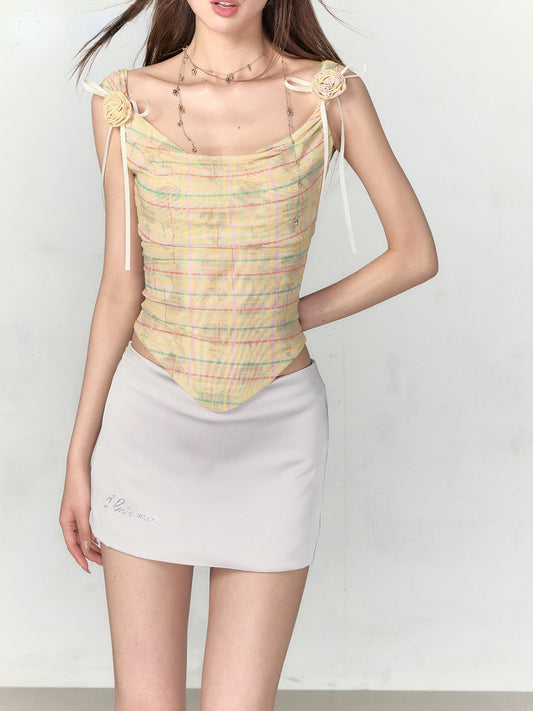 Pink & Yellow Plaid Bow Tie Tank Top