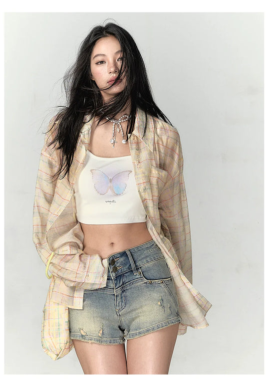 Pink & Yellow Bow Tie Plaid Shirt