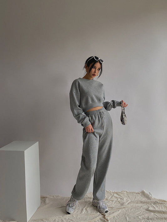 피케 하이웨이스트 조거팬츠-라이트그레이