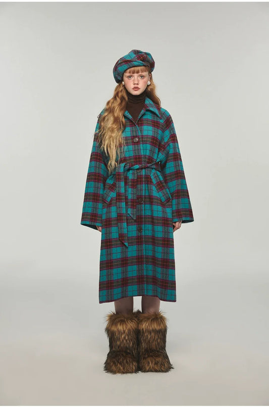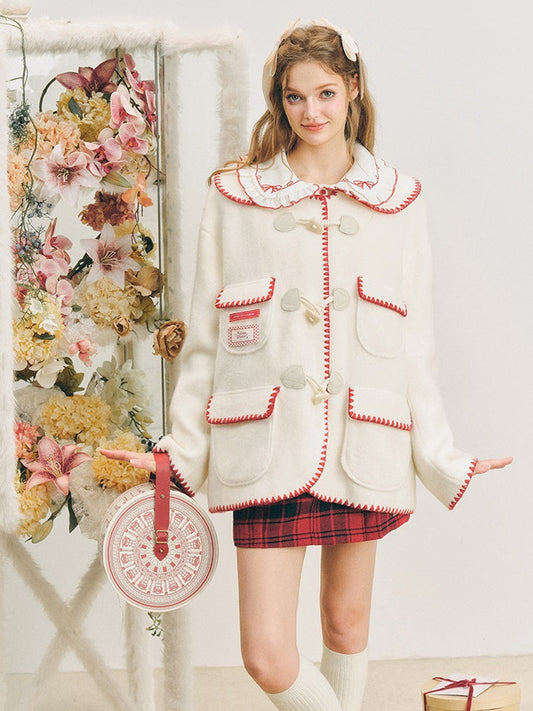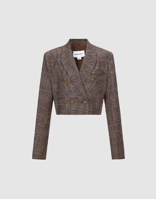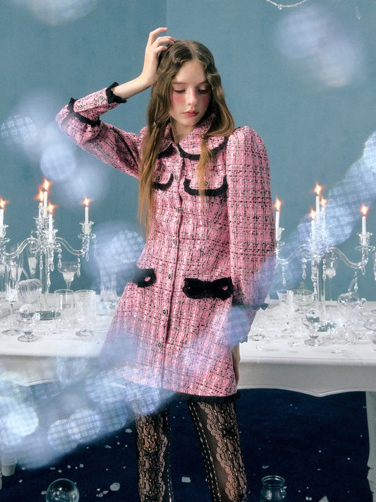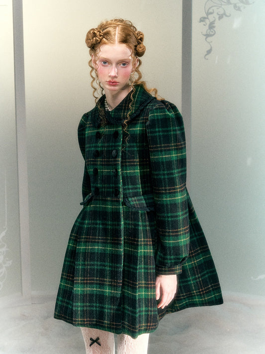 체크 무늬 큐트 레이스 더블 브레스티드 코트