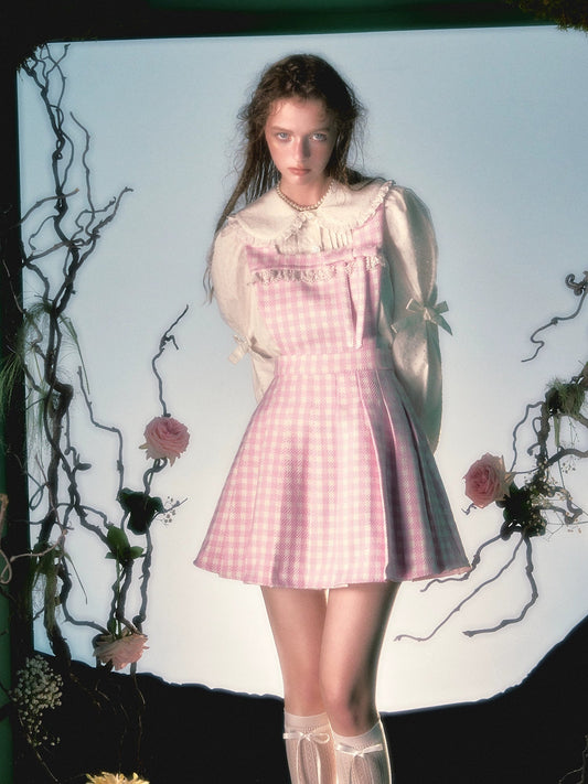 체크 무늬 보우 레이스 플리츠 스커트 Sundress