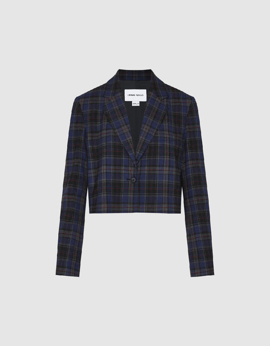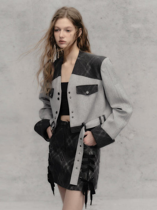 플레이드 데님 스티치 캐주얼 쇼트 재킷