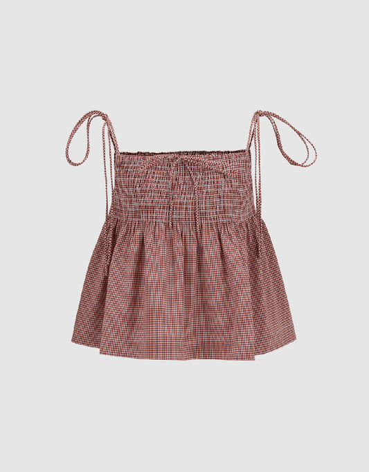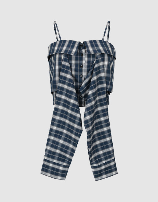 체크무늬 보우 크롭 캐미솔 & 롱 스커트