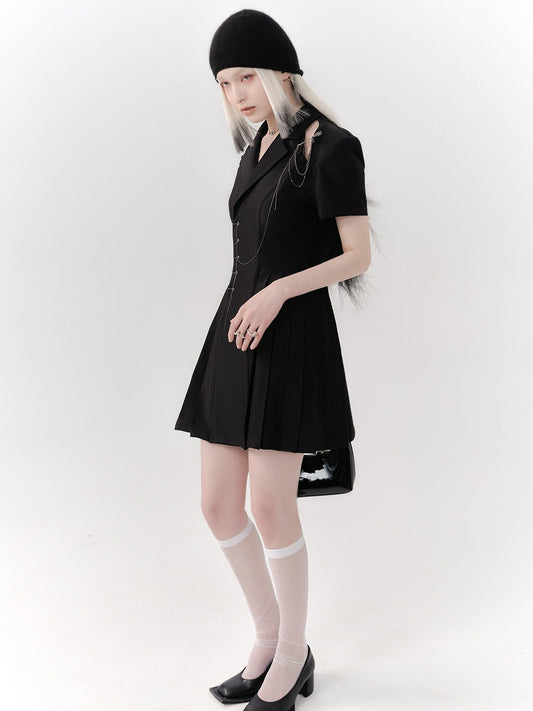 플리츠 체인 니치 A라인 원피스