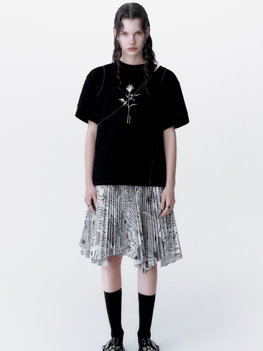 플리츠 비대칭 플레어 레터 스커트