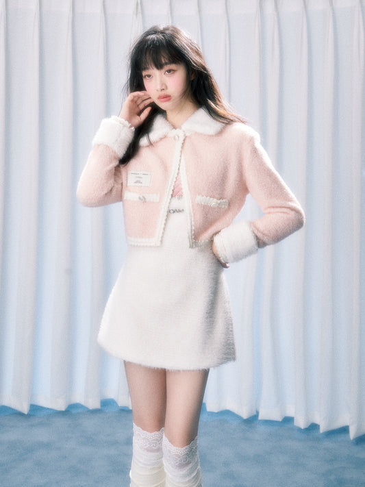 플러시 니트 카디건 & 스커트