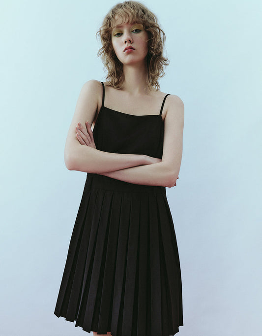 Pleated Square-cut Collar Straight Cami Dress