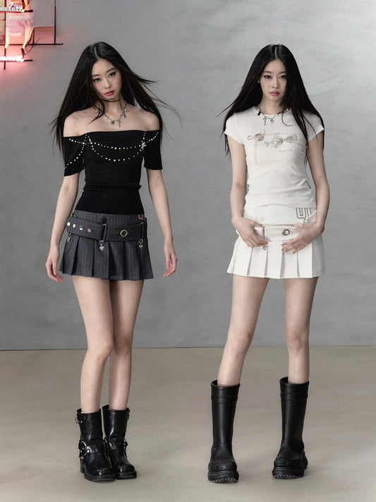 스트랩이 있는 플리츠 쇼트 A라인 스커트