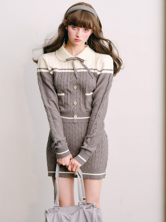 폴로 칼라 니트 스웨터 & 케이블 미니 스커트
