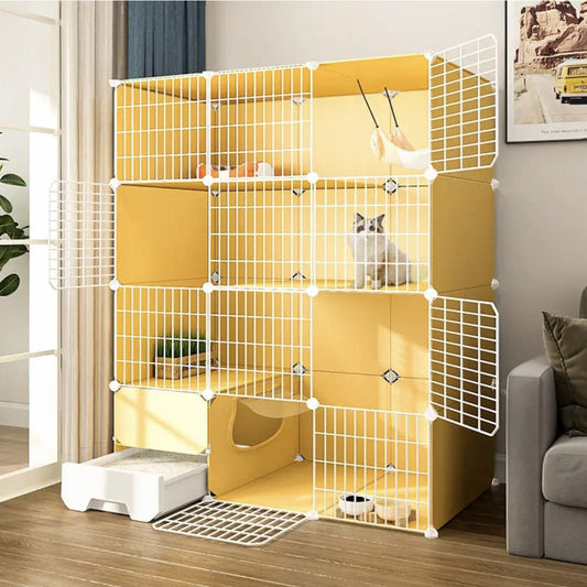 PP 고양이 빌라에는 고양이 쓰레기 상자가 포함되어 있습니다. 노란색/회색/흰색/블루/핑크