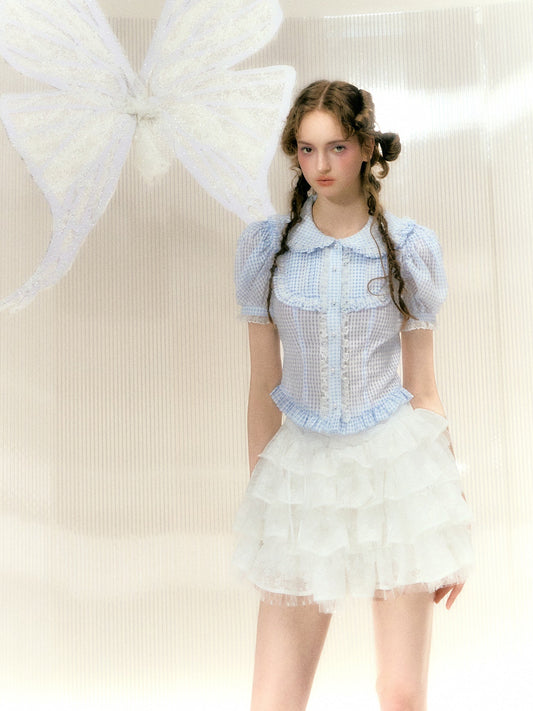공주 인형 칼라 퍼프 슬리브 프릴 셔츠