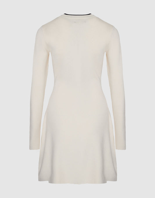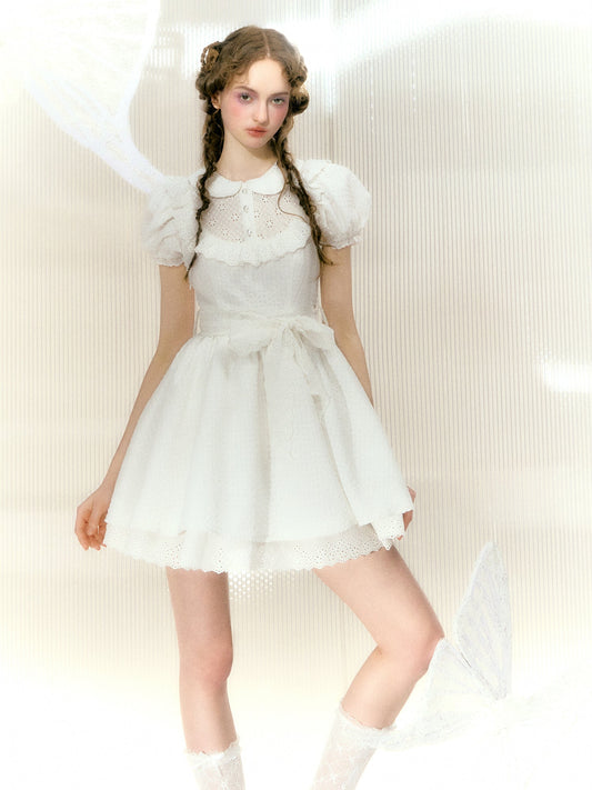 보우 스티치 레이스 폴로 칼라 쇼트 원피스