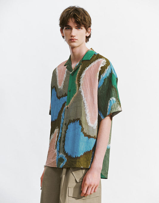 Printed Notch Lapel Loose Shirt