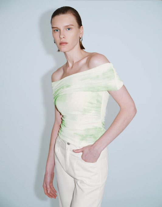 Printed Off-Shoulder Skinny T-Shirt