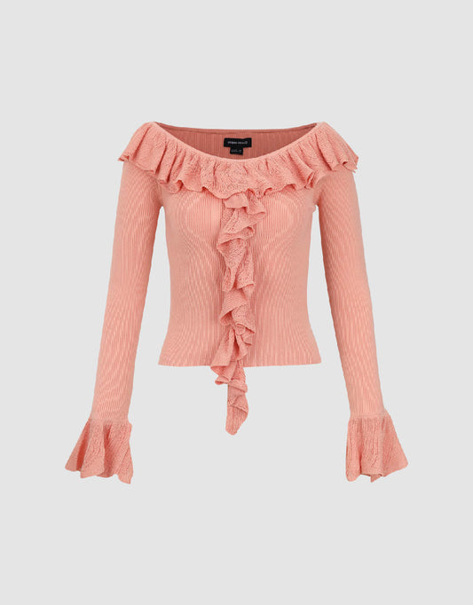 Raglan Sleeve Ruffle Knitted T-Shirt