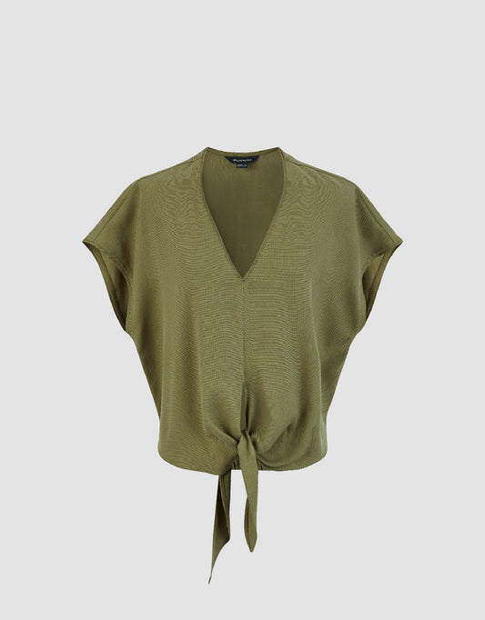 Raglan Sleeve V-Neck Knitted T-Shirt