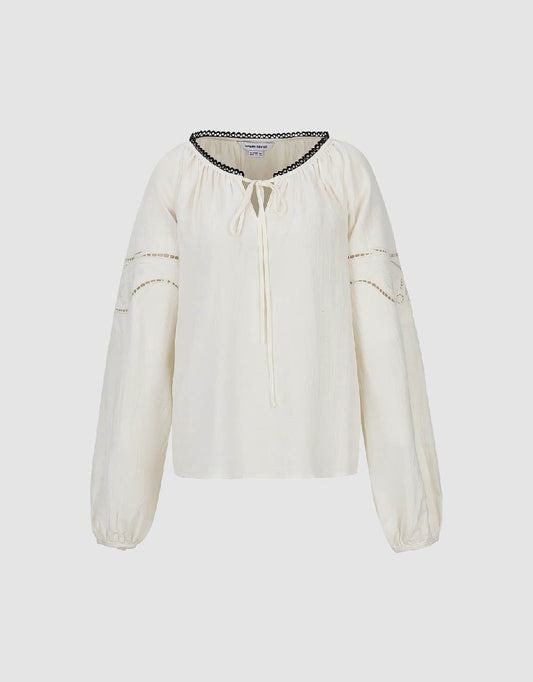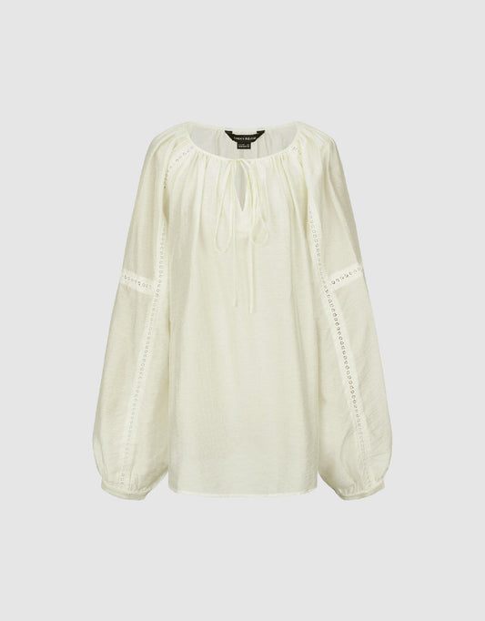 Raglan Sleeve Crew Neck Cut-Out Blouse